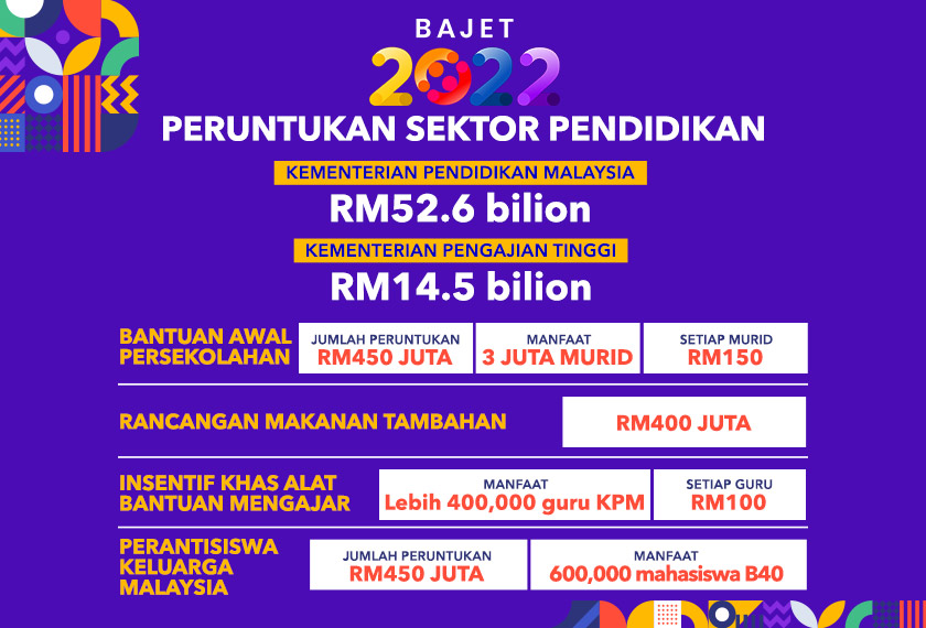 "Tidak ada yang lebih menggembirakan buat anak-anak apabila dapat kembali semula ke sekolah secara bersemuka bersama rakan. Setiap awal tahun, tentunya ibu bapalah yang paling sibuk menyediakan kelengkapan sekolah anak-anak," katanya ketika membentangkan Bajet 2022 di Dewan Rakyat di sini hari ini.
