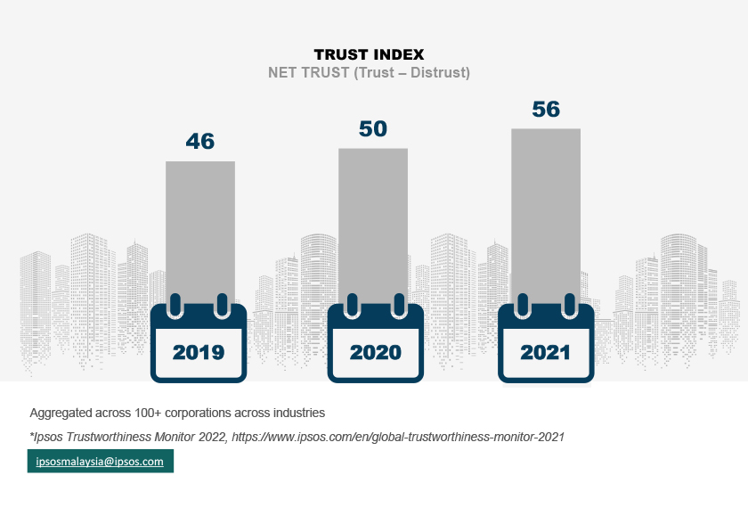 Secara keseluruhannya, kepercayaan rakyat kepada syarikat dan institusi telah meningkat secara konsisten pada 2021.