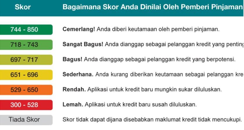 Harus diingat bahawa skor kredit yang lebih baik bukan sahaja meningkatkan peluang kelulusan permohonan kredit tetapi juga memberikan akses kepada kadar faedah yang lebih baik dan ganjaran lebih tinggi, menjadikan kos meminjam lebih rendah dalam jangka pendek dan panjang.