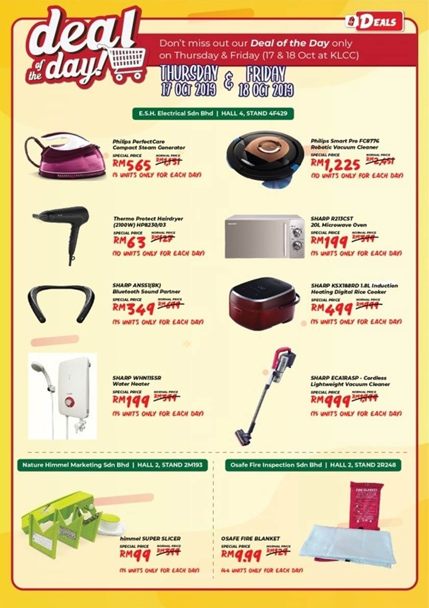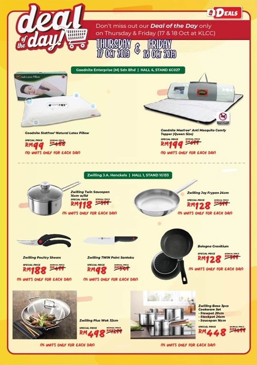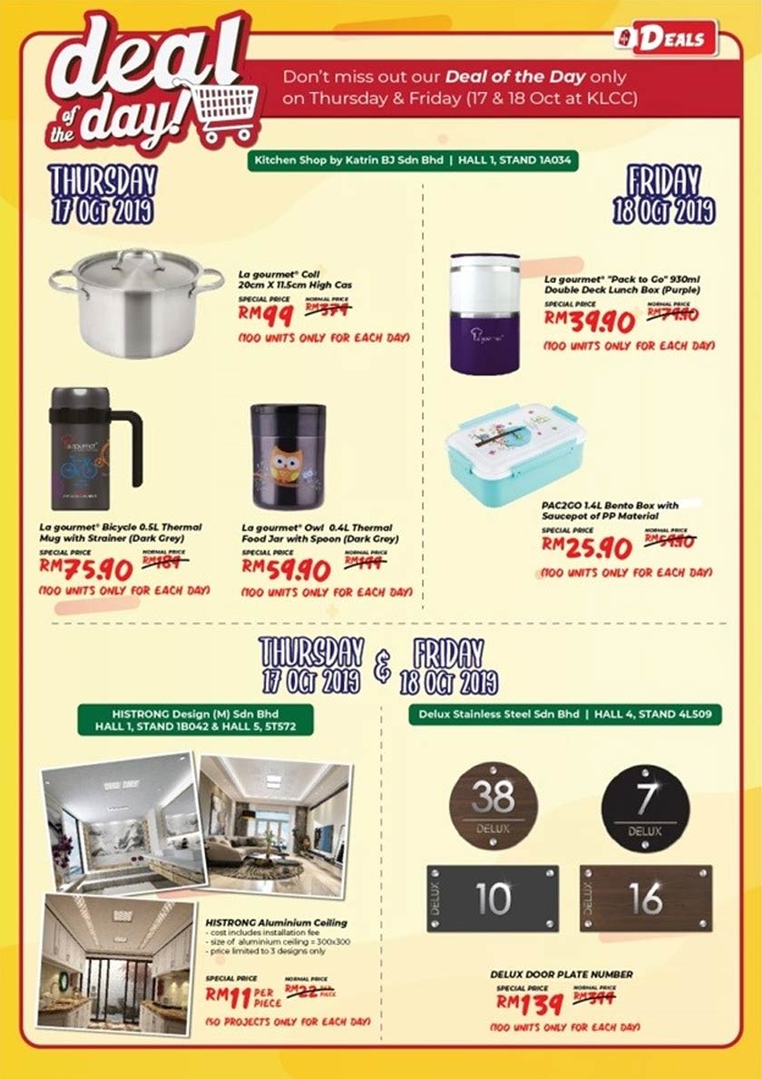 Anda tidak akan mendapati tawaran hebat ini di tempat lain! Daftar kunjungan anda lebih awal dan lawati kami di HOMEDEC dengan diskaun istimewa dan pakej pada item terpilih dari jenama kegemaran anda! Hanya pada hari Khamis & Jumaat - 17 dan 18 Oktober sahaja.