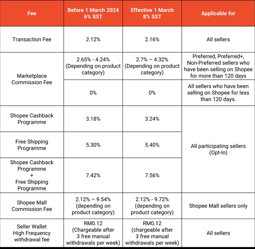 SHOPEE kini memaklumkan para penjual dan pengguna platform e-dagang mereka berkenaan dengan peningkatan kadar caj pada platform mereka – selari dengan peningkatan cukai SST.