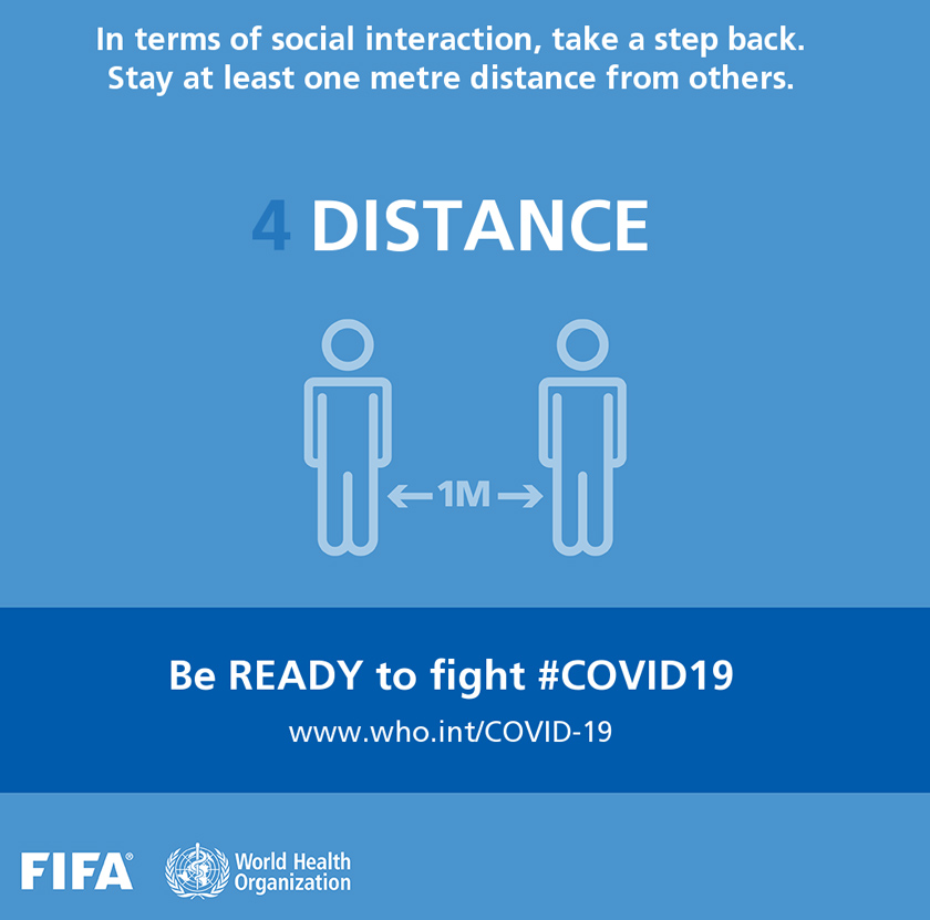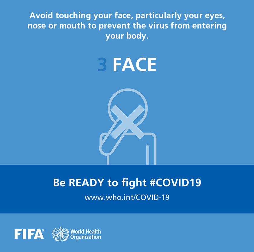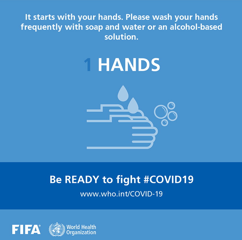 Persekutuan Bola Sepak Antarabangsa (FIFA) dan Pertubuhan Kesihatan Sedunia (WHO) mengumumkan kerjasama memerangi COVID-19 dengan melancarkan kempen yang diwakili pemain bola sepak terkenal dunia.