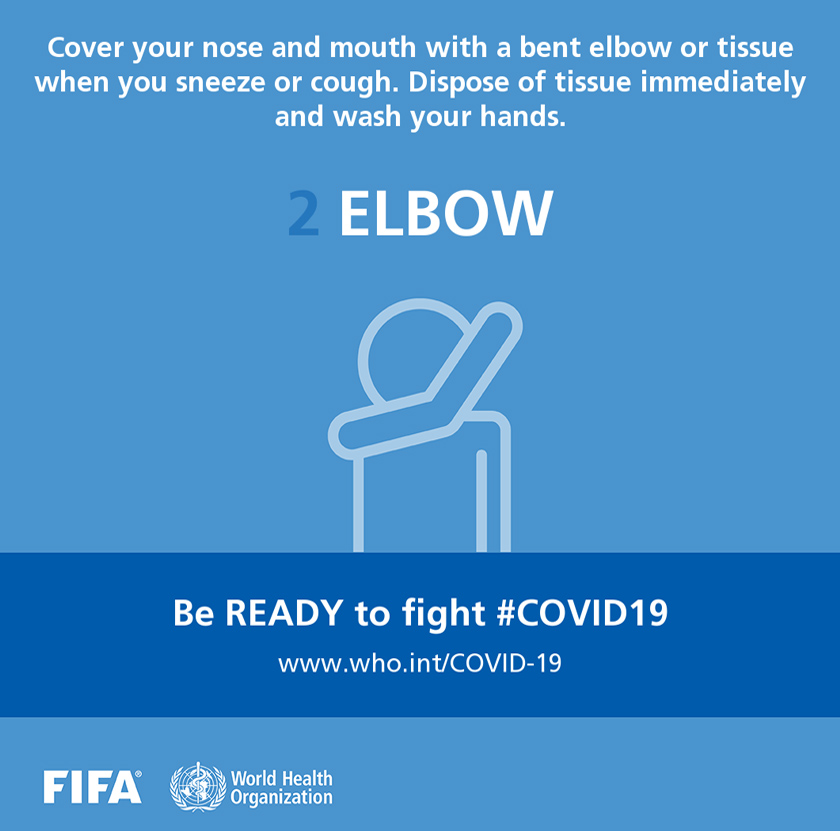"Tutup hidung dan mulut menggunakan siku atau tisu apabila bersin atau batuk, keluarkan tisu segera dan basuh tangan anda," kata Carli Lloyd yang merupakan pemenang dua kali Piala Dunia Wanita FIFA dari Amerika Syarikat," katanya.