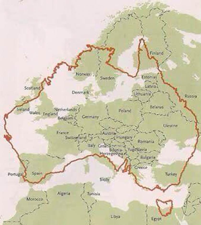 Walaupun metodologi ini tidak berasaskan mana mana prinsip geografi mahupun fizik dan tidak wajar diterima sebagai fakta tepat, namun usaha ini dapat sedikit sebanyak memberi kesedaran betapa luas benua Australia.