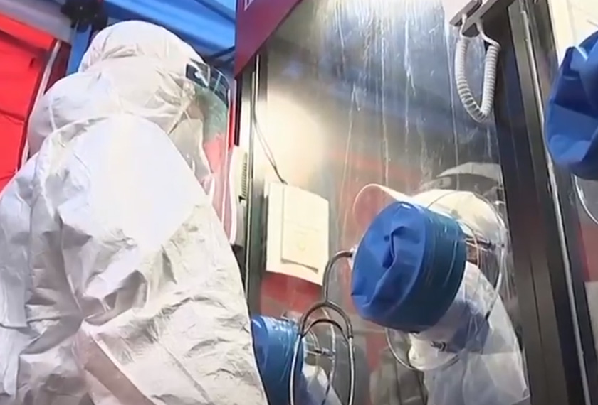 Di Hospital Awam Yang Ji, beberapa pondok yang menyerupai pondok telefon dipasang di parkir kereta di mana orang yang bergejala boleh diuji untuk koronavirus berkenaan tanpa perlu bersentuhan dengan kakitangan perubatan.