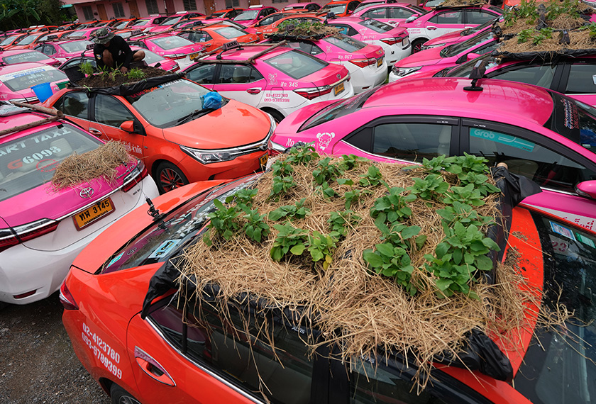 Nampak seperti perkara biasa, kecuali semua sayuran itu tumbuh di atas bumbung dan bonet ratusan teksi.