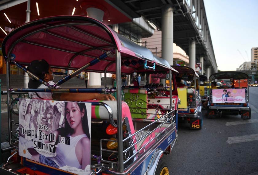 Sejak beberapa bulan lalu, anak-anak muda membantu memasang poster dan kain rentang idola K-pop kegemaran mereka di tuk-tuk, dan gambar artis sensasi mereka itu akan bertukar setiap bulan.