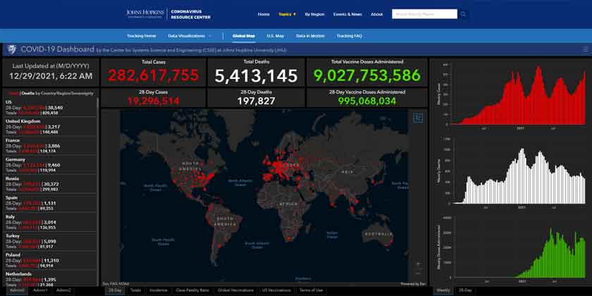 Penambahan jutaan kes baharu itu kini menjadikan bilangan kes COVID-19 global berjumlah 282.4 juta.