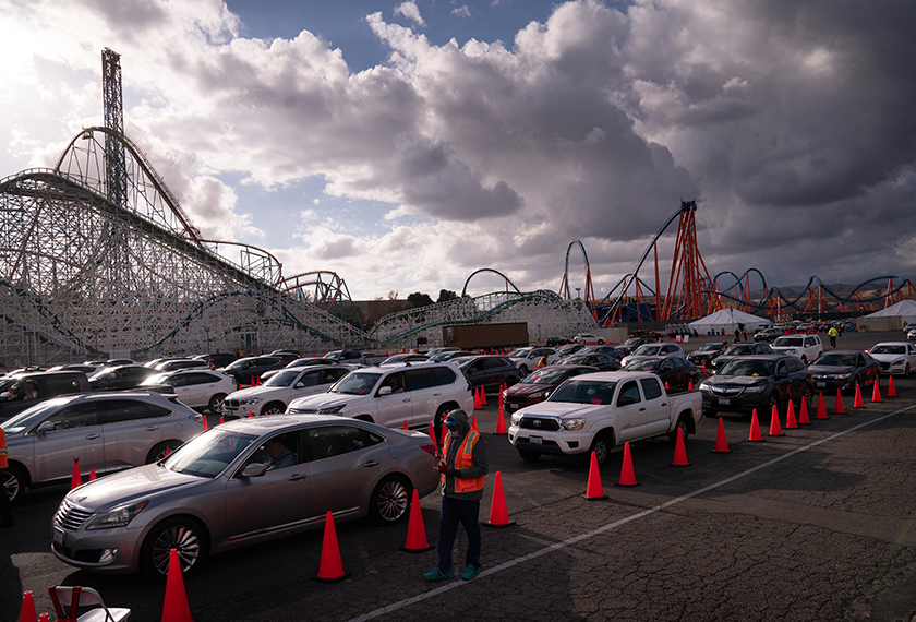 VALENCIA:Keadaan taman hiburan Six Flags Magic Mountain di utara Los Angeles yang sebelum ini sepi dan suram kini bertukar 'meriah' apabila dijadikan pusat vaksinasi.