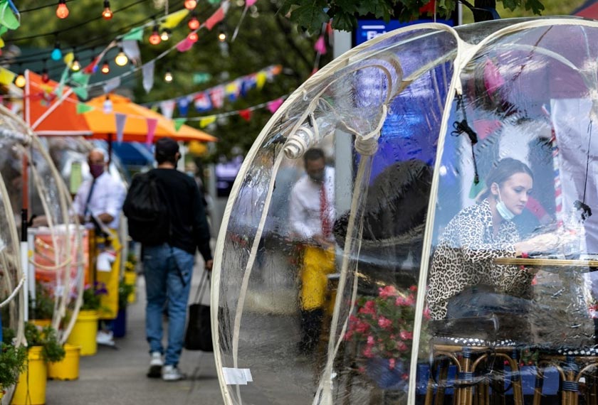 NEW YORK:Kehadiran gelembung plastik mula kelihatan di siar kaki kawasan komersial di New York, Amerika Syarikat, sekali gus menawarkan ruang bernafas yang selamat dalam kapsul semasa menjamu selera di kafe-kafe alfresco, lapor Reuters.