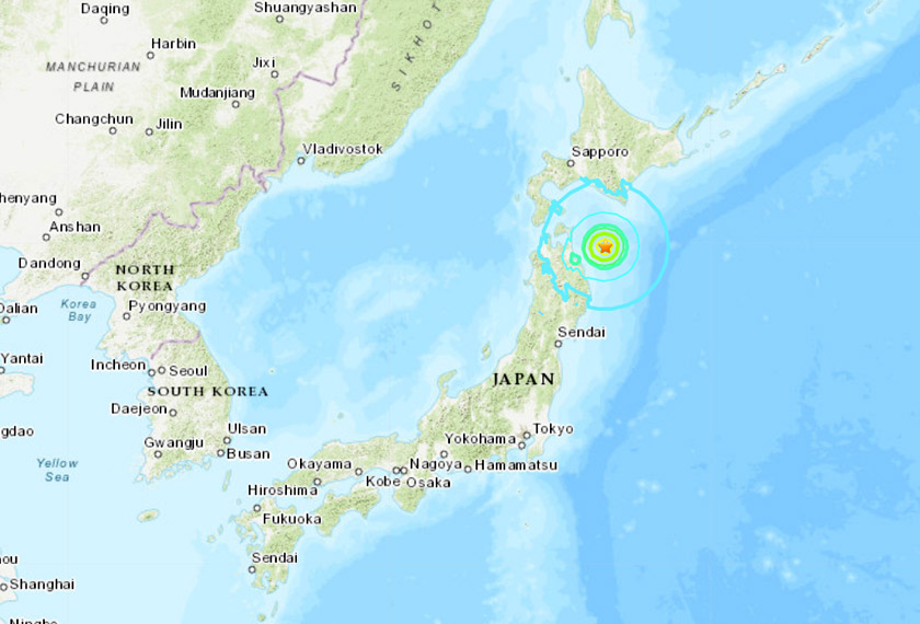 Laporan menyebut bahawa gempa yang berpusat 95 kilometer dari Hachinohe di timur laut pulau Honshu dikesan sekitar jam 9 pagi waktu pasifik (1 pagi waktu Malaysia).