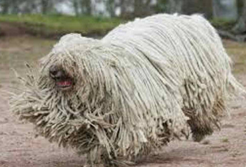 Anjing Komondor juga dikenali sebagai anjing biri-biri Hungary yang dipelihara untuk menjaga haiwan ternakan. Bulu anjing ini berwarna putih yang panjang dan seperti rambut dreadlock atau bulu mop.