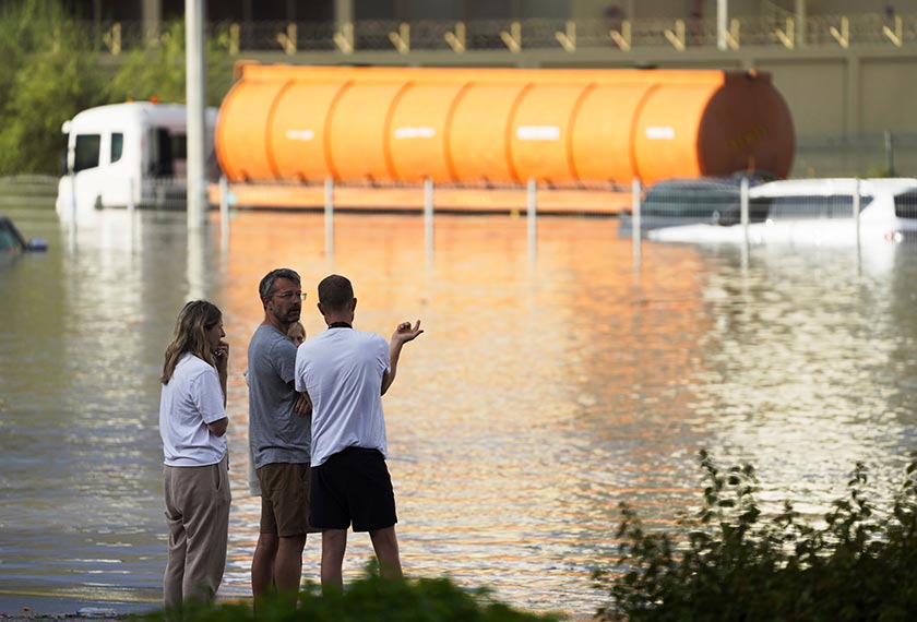 Sementara itu, pasukan polis dan petugas kecemasan mengharung jalanan Dubai yang turut ditenggelami air. Ramai pemandu dan penumpang kenderaan yang terkandas di jalan raya sambil menunggu untuk diselamatkan.