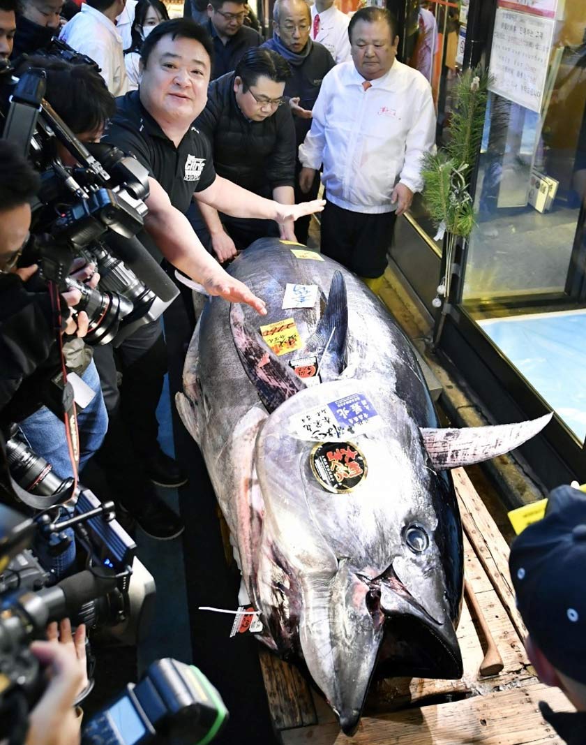 Seekor ikan tuna sirip biru berjaya dilelong pada nilai 193.2 juta Yen (RM7.4 juta) dalam satu sesi lelongan sulung bagi tahun 2020 di pasar ikan Toyosu di Tokyo, Jepun.