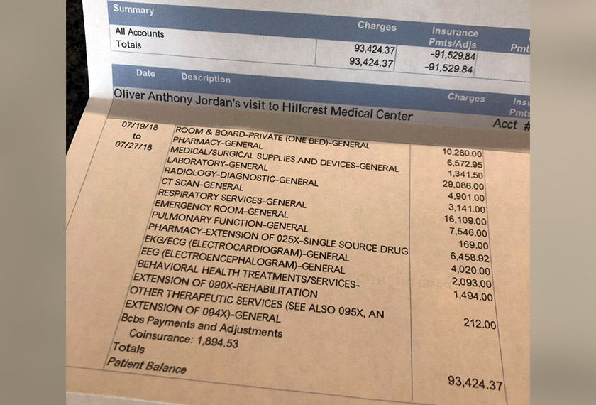 Selepas seminggu dirawat di hospital, Oliver Jordan menerima bil untuk rawatan yang terdiri daripada penggunaan makmal (RM119,842), penggunaan katil dan wad (RM42,482) dan perkhidmatan bantuan pernafasan (RM51,209).