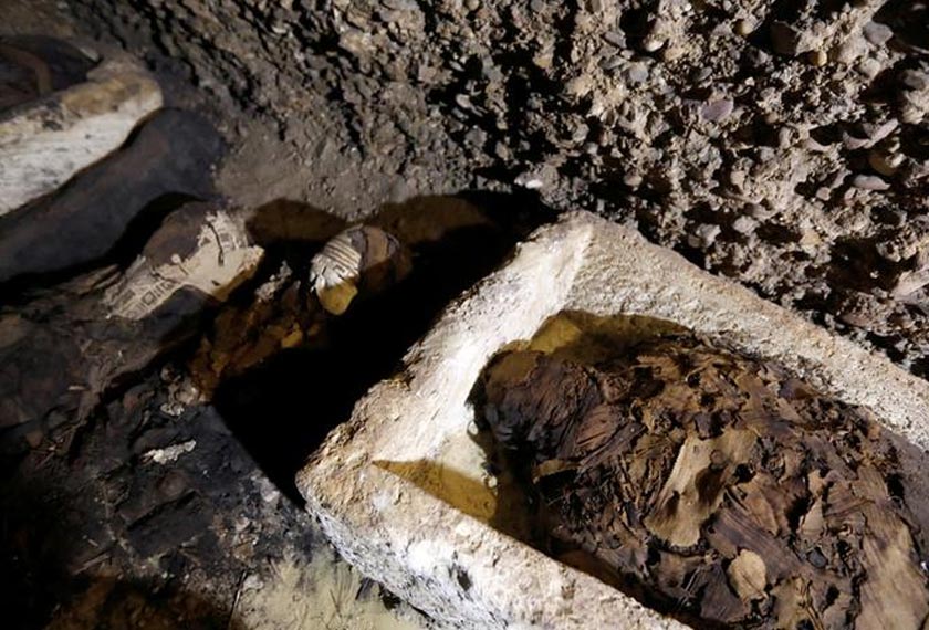 Seripahan keranda kayu dilihat berada di atas beberapa mumia tersebut. - Foto Reuters