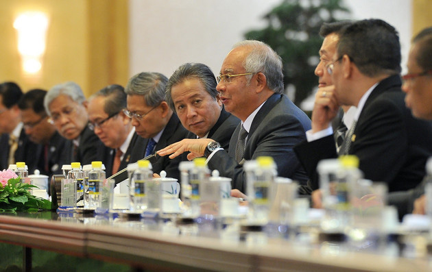 Datuk Seri Najib Tun Razak delegasi 15 anggota termasuk Menteri Luar Datuk Seri Anifah Aman dan Utusan Khas Perdana Menteri ke China Tan Sri Ong Ka Ting. -Foto BERNAMA