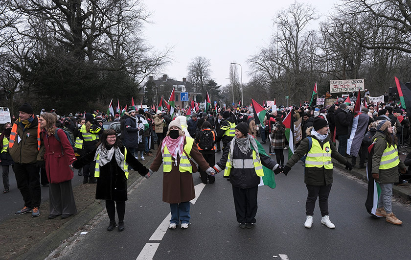 Di luar bangunan ICJ berlaku kekecohan sehingga menyebabkan polis Belanda terpaksa bergelut untuk memisahkan kumpulan penyokong Palestin dan Israel.