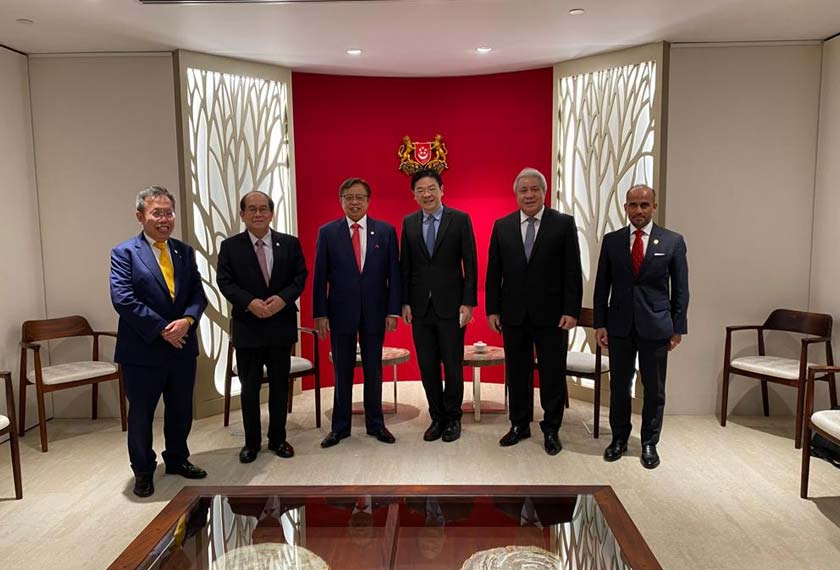 Terdahulu, Abang Johari dan anggota delegasi mengadakan kunjungan hormat kepada, Timbalan Perdana Menteri dan Menteri Kewangan Singapura, Lawrence Wong diikuti Menteri Kanan dan Menteri Penyelaras Keselamatan Negara, Teo Chee Hean.
