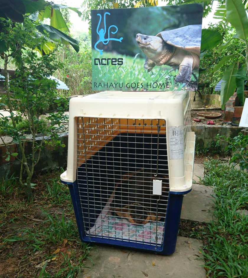 Sementara itu, Channel NewsASia yang memetik kenyataan ACRES melaporkan penyu gergasi Malaysia yang semakin pupus itu dihantar pulang ke Malaysia untuk diberikan peluang kedua untuk hidup bebas di habitatnya.