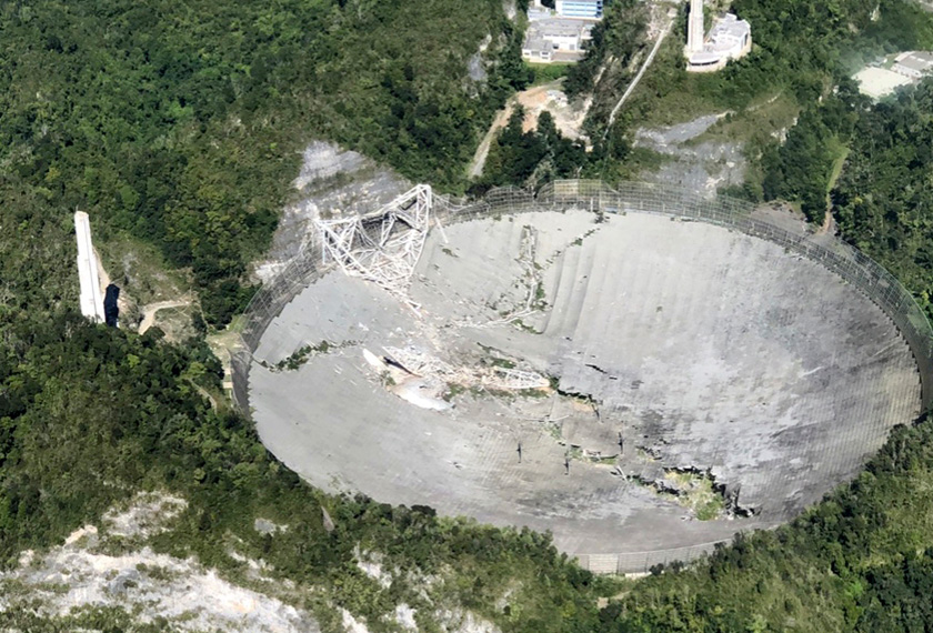 Pada Ogos, dua kabel yang menyokong piring reflektor tersebut telah terputus menyebabkan kerosakan dan memaksa pengawai untuk menutup balai cerap itu.