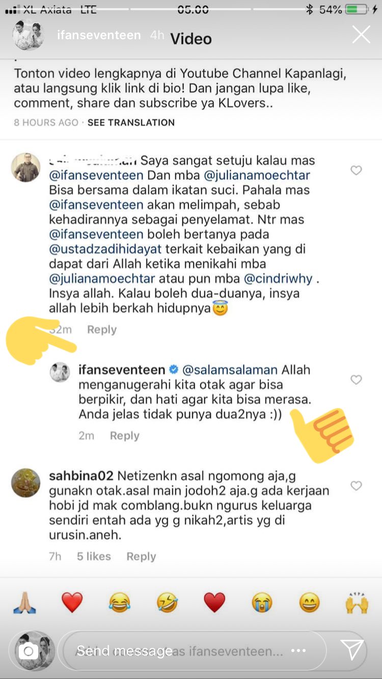 Terdapat segelintir netizen yang mencadangkan agar Ifan berkahwin dengan balu kepada Herman, Juliana Moechtar dan balu kepada Bani, Cindri Wahyuni.