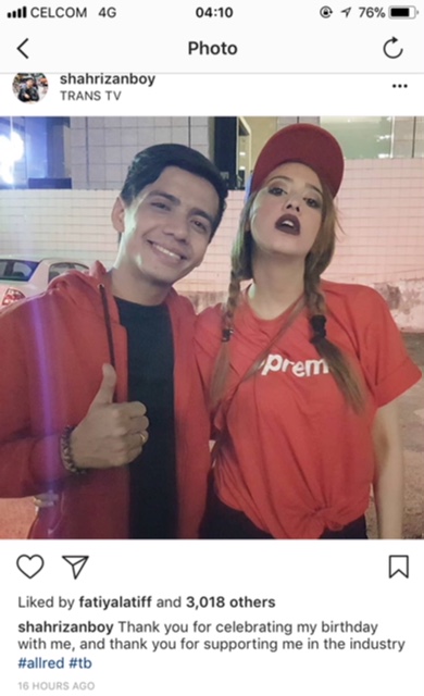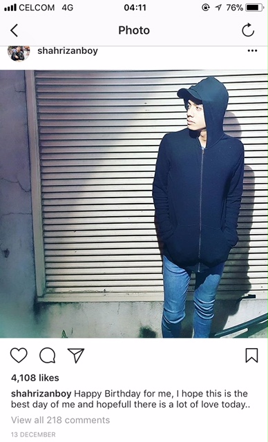 "Dekat Instagram Shahrizan tu, ada posting 'happy birthday to me', tapi tarikhnya adalah pada 13 Disember yang lepas.