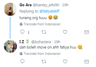 "Dah boleh move on ah Fathia," balas @Izshaziera.