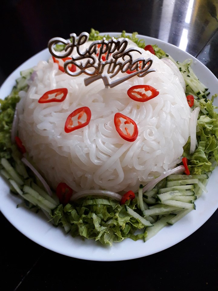 Paling comel, tanda ‘happy birthday’ turut tersemat kemas di atas himpunan laksa tersebut sedia menanti kepulangan suaminya.