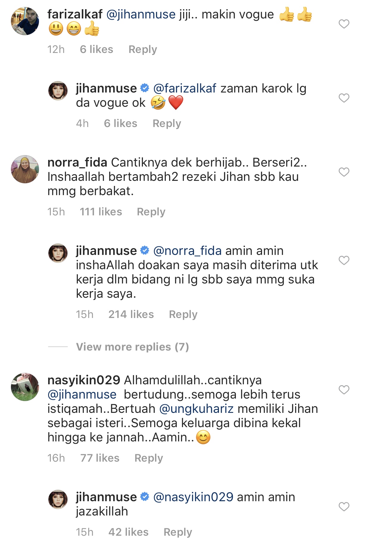 Jihan terus menerima komen yang positif dari pengikutnya yang rata-rata gembira dengan penghijrahan tersebut.