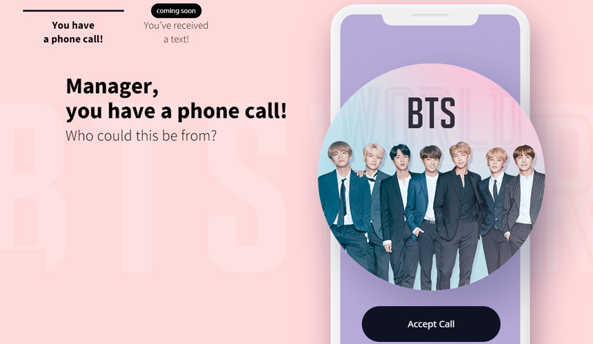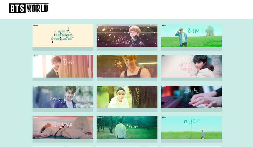 Laman ini menyediakan demo permainan mini BTS World dan juga menawarkan pengenalan kepada permainan, cerita BTS dan ‘sneak peek’ fungsi permainan yang membenarkan pemain berinteraksi dengan anggota BTS.