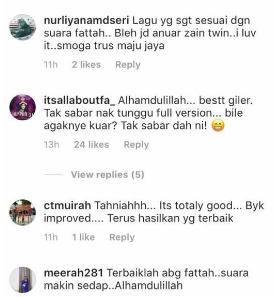 Lagu versi akustik itu telah membuatkan rata-rata peminat Fattah ‘histeria’ dan tidak sabar menanti ia dilancarkan secara rasmi.