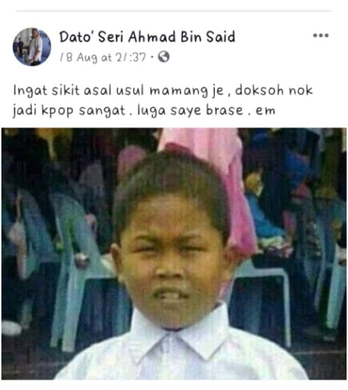 “Saya nampak beberapa posting kononnya ‘ayah’ tidak suka nama saya dan saya orang Kemaman tidak sedar diri kerana berimej k-pop, tak apalah… biarkan.