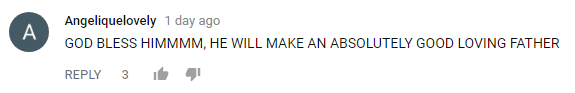 "Dia akan menjadi seorang bapa yang sangat mengambil berat dan penyayang," tulis Angeliquelovely di ruang komen YouTube.