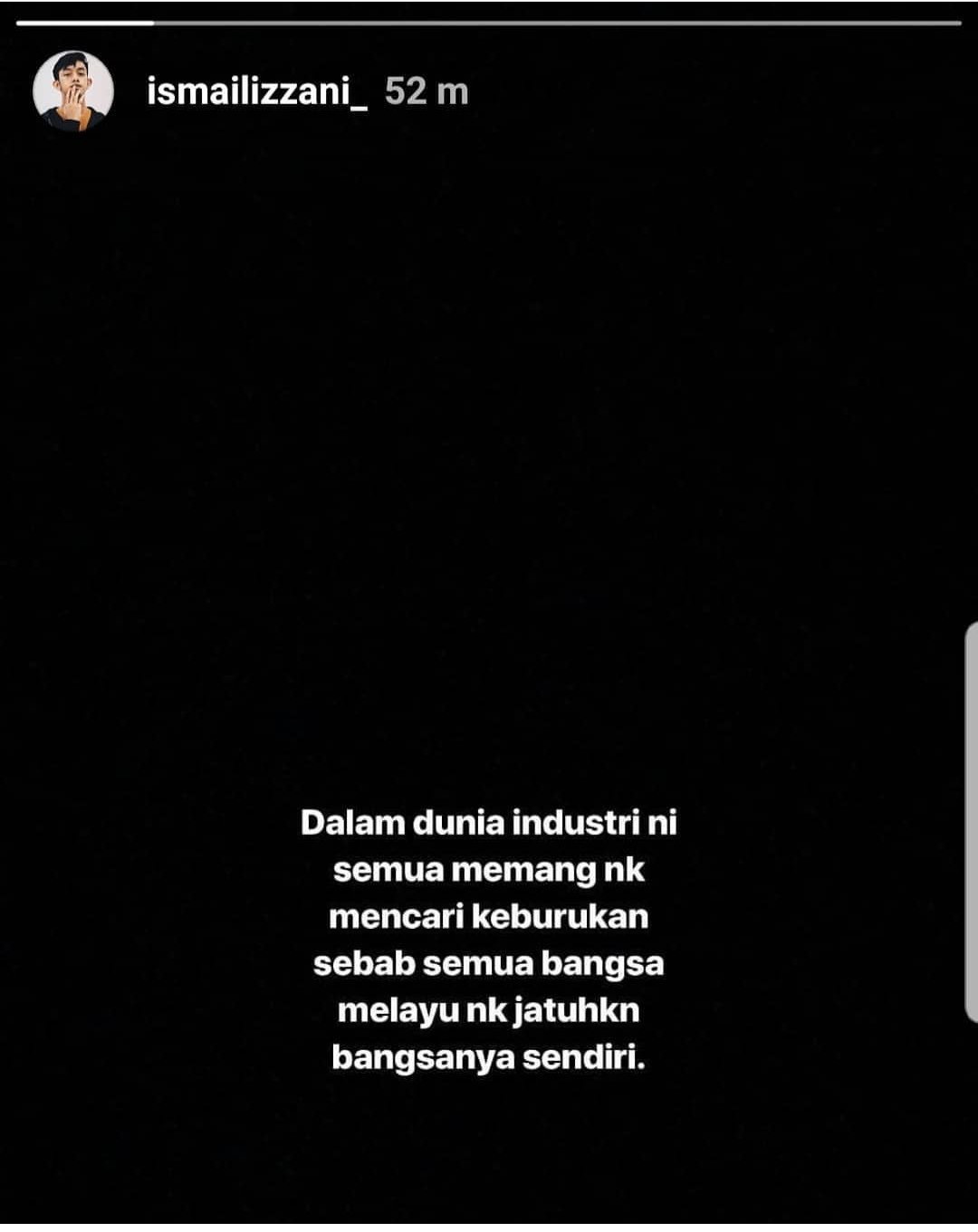 "Dalam dunia industri ini, semua memang nak mencari keburukan sebab semua bangsa Melayu nak jatuhkan bangsanya sendiri," luahnya.