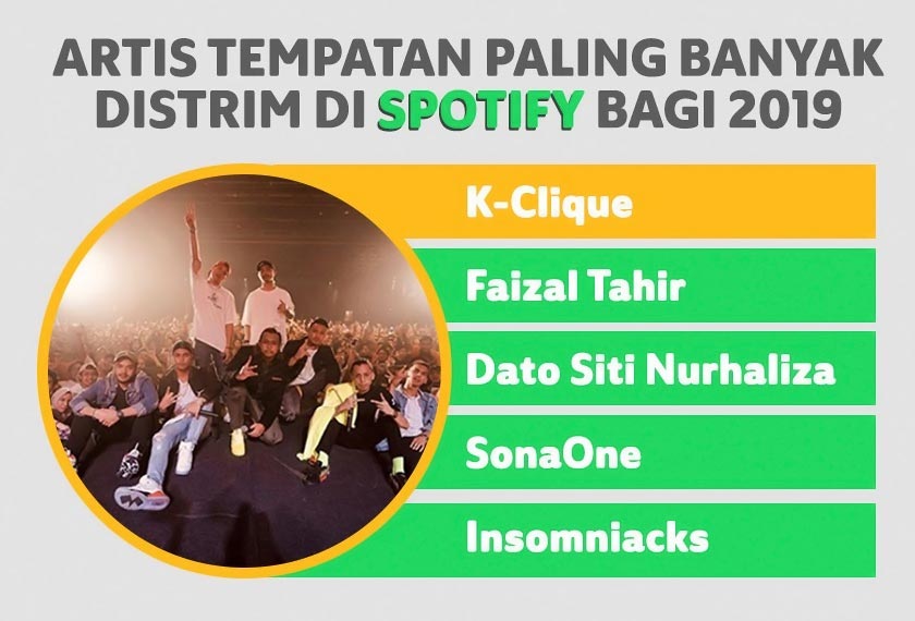 K-Clique didedahkan sebagai artis tempatan yang mencatat jumlah penstriman tertinggi bagi 2019, berdasarkan senarai tahunan Spotify Wrapped.