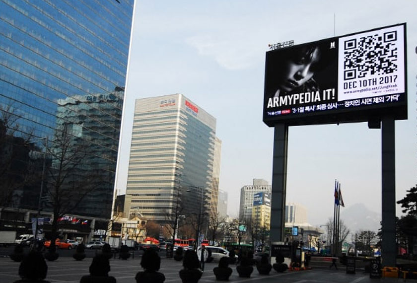 Bukan hanya di media sosial, BTS turut memaparkannya di papan iklan terletak di tujuh bandar termasuk New York, Los Angeles, London, Paris dan Hong Kong.