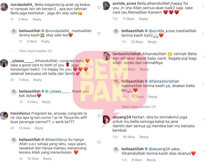 Menerusi komen di Instagram (IG) miliknya, Bella turut akui kini dia sedang hamil anak kedua.