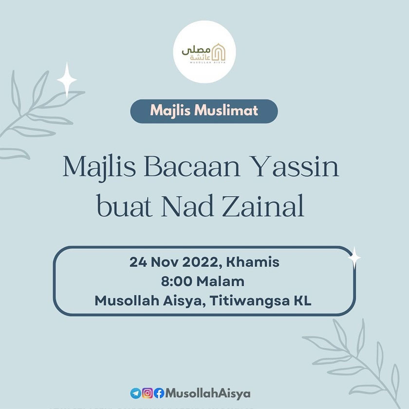 Sementara itu, pemenang dua kali anugerah Pelakon Wanita Terbaik Festival Filem Malaysia, Datin Umie Aida pula akan menganjurkan majlis bacaan Yasin buat Nad.