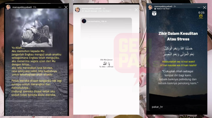 Selain itu, Abby turut memuat naik hantaran doa memohon dipermudahkan urusan saat anak-anaknya diuji oleh Allah. -Gempak