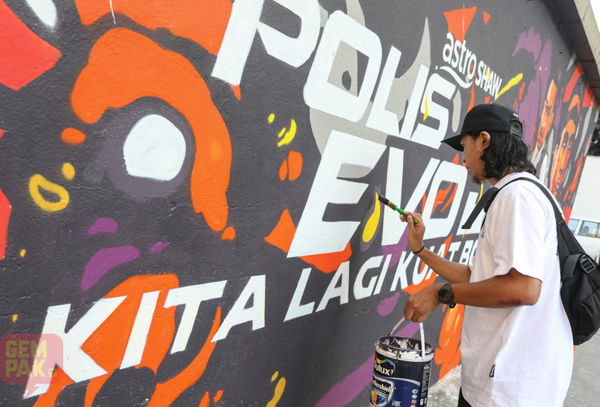 “Selain itu, menerusi lukisan mural ini, kami cuba membawa mesej selaras dengan tagline Polis Evo 3 iaitu ‘Kita Lagi Kuat Boh’ kepada masyarakat di mana kita mampu melakukan dan atasi apa sahaja rintangan dengan usaha bersama,” katanya.