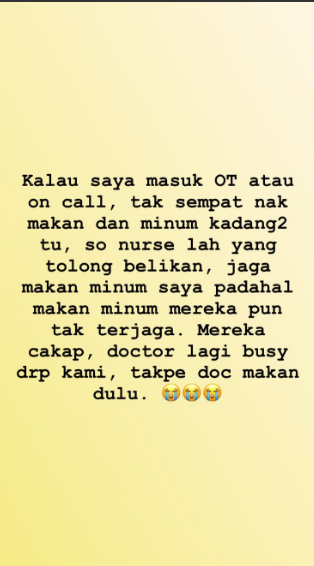 Menerusi entri di Twitter, Dr. Amalina yang kini berkhidmat di United Kingdom berkongsi kisah yang pernah dialaminya bersama jururawat di hospital.