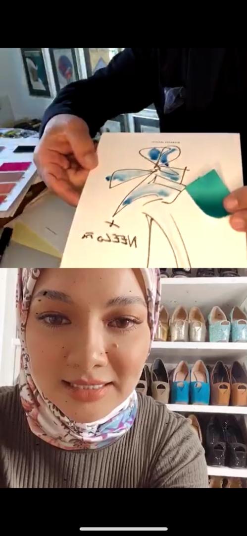 Menariknya lagi, Giuseppe kemudiannya melakarkan rekaan sepatu kahwin untuk Neelofa secara spontan.