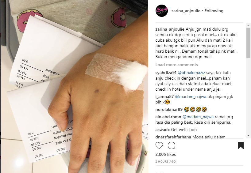 "Demam tonsil tahap nak mati. Bukan mengandung dengan Mail," katanya.