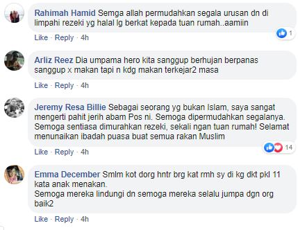 Sementara itu netizen mendoakan supaya tuan rumah dan dua pekerja Pos Malaysia ini dimurahkan rezeki. Tambah manis, gambar ini turut menarik perhatian netizen yang bukan beragama Islam.