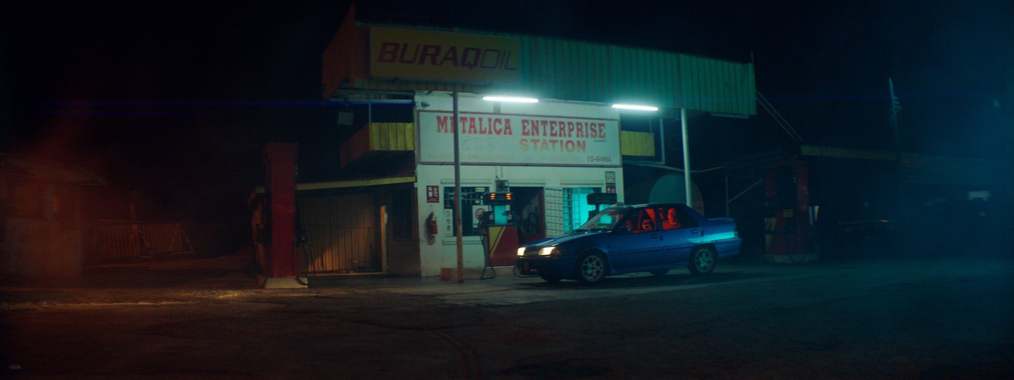 Dengan teknik pencahayaan dan suntingan yang menarik, stesen minyak itu kelihatan seperti di luar negara.