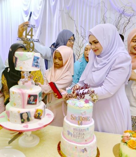 Siti ketika memotong kek ulang tahun ke-14 Sitizoner dan kek kelahirannya ke-39 bersama peminat. - Astro Gempak