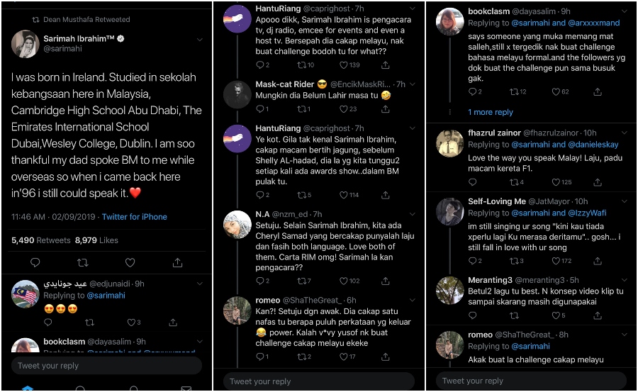 WARGA net memuji pengacara dan pelakon Sarimah Ibrahim kerana tidak melupakan bahasa ibunda walaupun tinggal lama di luar negara.
