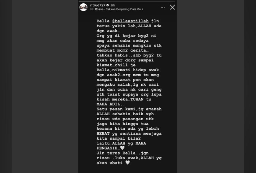 “Bella @bellaastillah jalan terus, yakin lah Allah ada dengan awak.