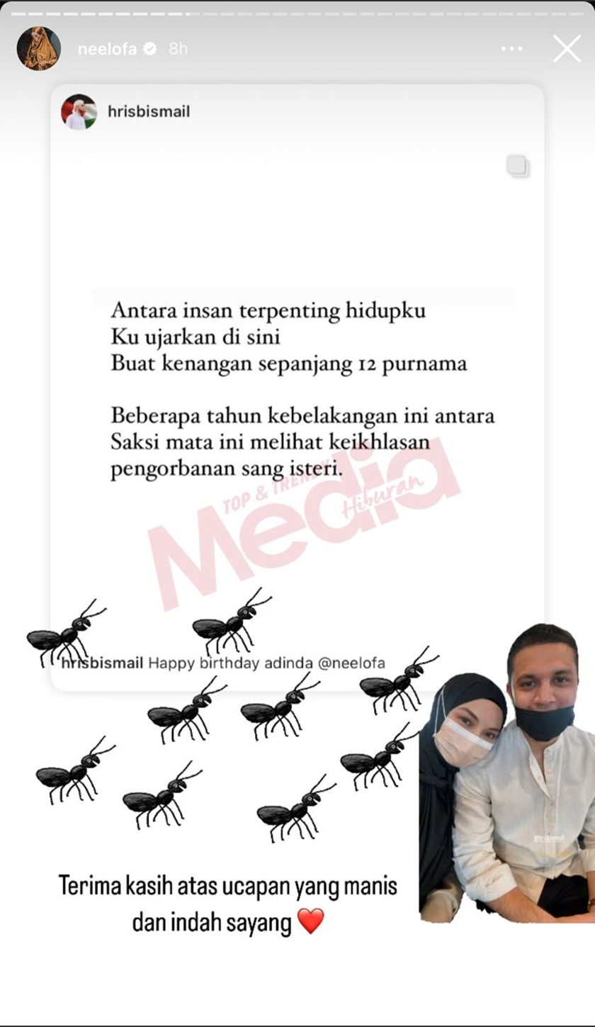 “Terima kasih atas ucapan yang manis dan indah sayang,” balas Neelofa.
